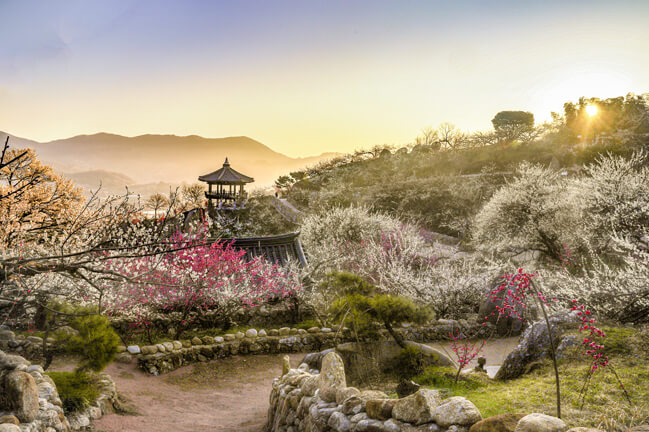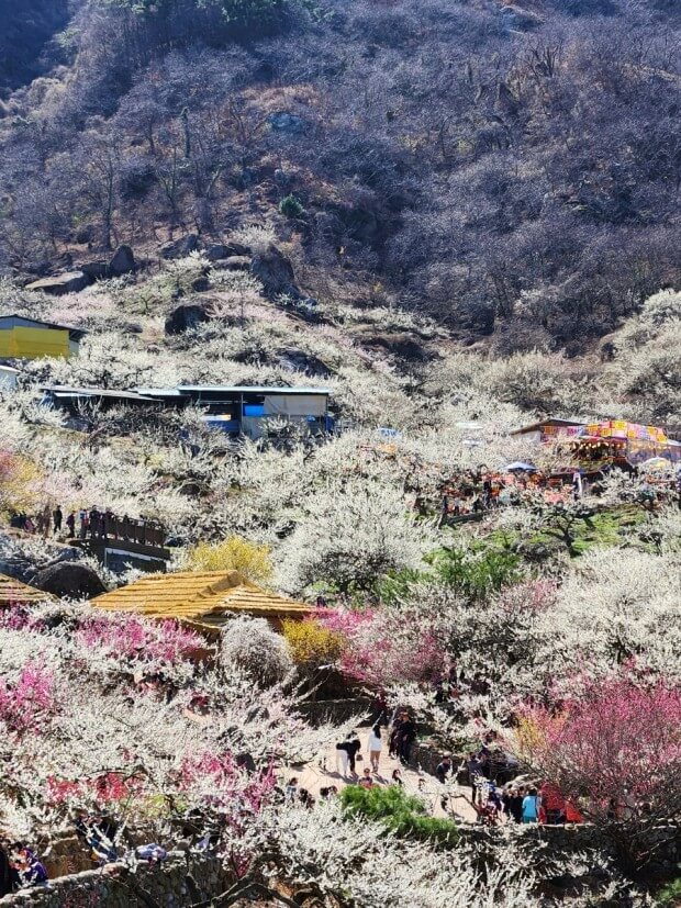 온 산이 매화로 뒤덮여 있는 환상적인 풍경을 볼 수 있는 곳. 매화군락지인 광양 매화마을 축제!